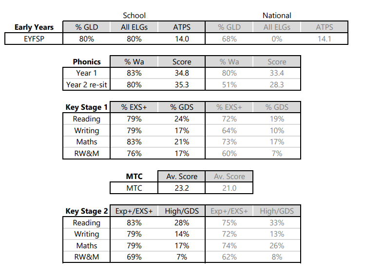 Our school results for 2024-2025 can be viewed in the tables below.